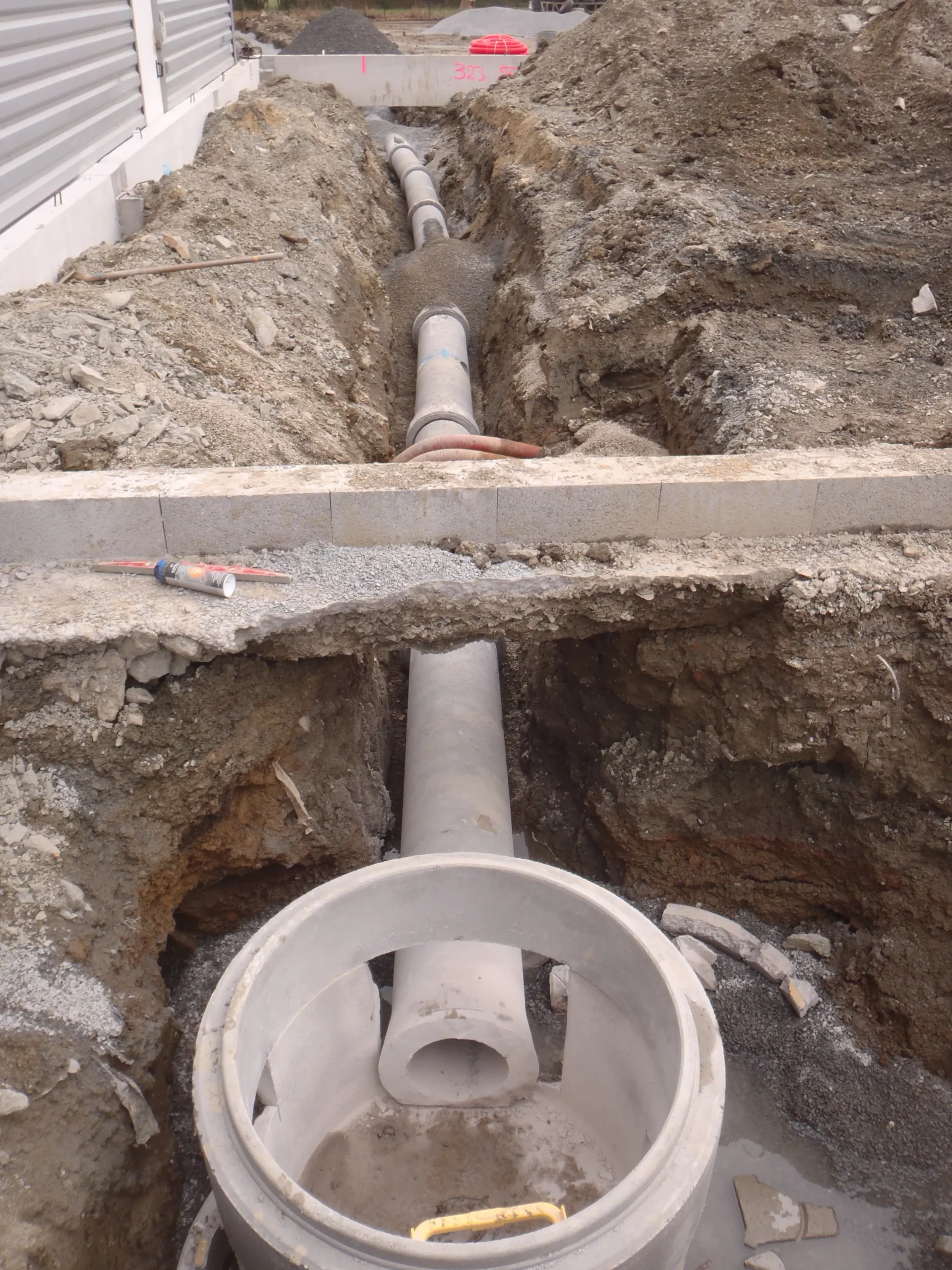 Nous réalisons la pose de réseaux d’eaux pluviales en matériaux adaptés selon les contraintes du chantier (PEHD annelé, PVC, béton), pour des diamètres allant de 100 à 800 mm.